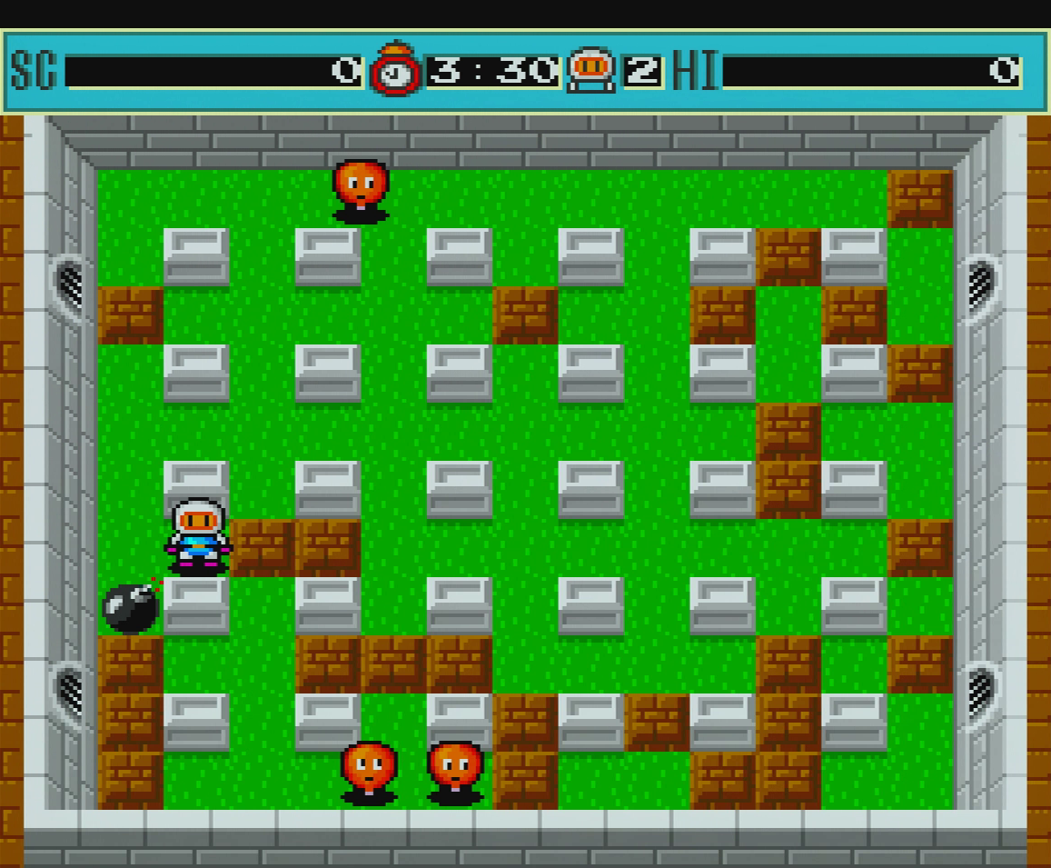Like with Atomic Punk, a mostly different team at Hudson Soft developed Bomberman, though Jun Chikuma returned to compose the soundtrack. Designer Tsukasa Kuwahara went on to be a game designer on Bomberman ’93, a highly regarded entry in the franchise, and graphic designers Hideyuki Ogura and Mika Sasaki would go on to do map design for 1997’s Bomberman 64 and graphic design for Bomberman II respectively. This game is also the first in the series to have its sound design handled by Keita Hoshi, a prolific sound and music programmer for Hudson Soft who worked on games like Soldier Blade, Saturn Bomberman, and Bloody Roar 3.