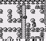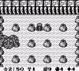 Stage 3 always involves fighting against foes that are much larger than basic enemies, but not quite on the level of bosses. These enemies take multiple hits and shoot projectiles at you the way bosses would, so the Motobombers are doubly useful for taking hits and/or dodging them ahead of time. The Motobombers felt somewhat overpowered in the previous games, so it’s nice to have opponents that justify their strength. Stage 4 is where things get extra interesting – the challenges here are (mostly) unique to each area and offer scenarios not yet seen in any Bomberman game. Stage 1-4 requires you to provoke an invincible monster to chase you so it can eat otherwise indestructible mushrooms. Stage 2-4 makes you disable large stationary UFOs that shoot projectiles in a zigzag formation. Stage 4-4 (and 6-4) litter the field with deadly bombs that’ll instantly kill Bomberman if they get set off by any of his bombs, so you need to map out the safest path to take around them. The added surprises here do so much to mitigate the tedium present in the previous GB games, but it is unfortunate that the game is once again limited to a very small batch of power-ups that are easy to max out on.