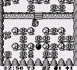 The story of GB 3 takes place on a planet in the Bomber Nebula called Owen, which houses a not-so-hidden secret: the dangerous Devil Bomber (also known as Evil Bomber) was sealed underground within the planet’s crust and has now broken loose! With the assistance of characters like Honey and newcomer Cutie Bomber, Bomberman has to once again save the day as he’s prone to doing and reclaim the stolen Bomber Capsules while he’s at it. Despite being a single player game (Black Bomberman appears, but only in cutscenes), GB 3 implements Bomberman’s allies by having them run a shop that offers upgrades in exchange for the Bomber Capsules earned from the bosses. These powers consist of what was seen in the previous two games alongside four different Motobomber bikes, further emphasizing them as a core part of the GB trilogy’s identity. Each Motobomber offers different perks as well; for example, the Mk. 4 can move the fastest and take two hits before breaking, but loses out on the Mk. 2’s ability to jump and the Mk. 3’s ability to break blocks while dashing. Owning all four Motobombers is never redundant since you’re offered an opportunity to bring out a new one each time you die or after moving to the second part of a given level. Motobombers destroyed during a level aren’t usable again until you clear said level, which makes having a backup roster to rely on extremely helpful. Though there is always enough currency to afford everything by the end, players do have a degree of choice in how they upgrade Bomberman throughout. Upgrading Bomberman bit by bit after every area is perfectly viable as is saving up across several areas to afford the strongest stuff sooner.