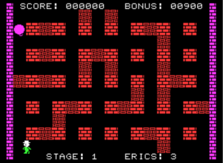 When playing on the NEC PC-88 series of computers, everything is visually simplistic but rather colorful and the sprites are detailed and big enough to stand out amongst the action. There’s no music, only sound effects for movement, explosions, and losing a life, which is something that would remain true with every version of the game. This version moves exceptionally fast compared to the others, making it difficult to outrun red balloons without using a wall to break their line of sight.