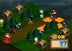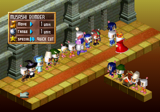 While there are plenty of entries in the series that do unique and interesting things, none of them are quite as distinct as Bomberman Wars. This is the sole game in the entire franchise to adopt the strategy genre and even its take on said genre is unusual compared to its contemporaries. It’s also the only entry in the series that’s playable on both the PlayStation and Sega Saturn. Instead of Jun Chikuma’s ever-enjoyable tunes, Bomberman Wars deploys the kind of soundtrack you’d expect to hear in something like Final Fantasy Tactics, giving it a feel closer to that of a fantasy epic. Despite being a prequel to Bomberman World, it’s developed by a different team (Metro, who also did Pocket Bomberman) and most of the staff specific to this game have no clear and/or previous credits on earlier entries in the series. All of these factoids combine to create a game with a voice unlike any other in the series, one that’s quirky and comes off as undercooked once you get used to it, but so interesting that it’s well worth experiencing.