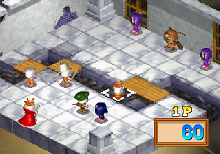 What lends Bomberman Wars much of its potential strategy is its diverse roster. Each Bomber has differing stats as well as an ability that’s almost always unique. For example, the Bomber Cleric has the ability to increase a bomb’s timer by one. Bomber Giant can pick up other Bombers and put them down and Bomber Monk can shove characters forward, making them both powerful units when it comes to manipulating the board. More mobile units like Bomber Fairy and Bomber Ninja can bypass terrain entirely, making them ideal for zeroing in on the enemy king. Some units, such as the Bomber Fighter, Bomber Witch, and Bomber Prince don’t get abilities at all, but they get superior movement and/or the ability to place bombs multiple spaces away to compensate. The Bomber Archer can shoot bombs to reduce their timer by one and the Bomber Musashi can instantly bring a bomb’s timer down to one by slashing it directly. Winning battles earns you money for buying items back at the castle, which range from temporary stat boosts to granting a second turn and even allowing you to force sudden death to occur. Winning a battle without losing a unit gets you even more cash, but items are never essential for victory and it’s easy to make enough money to hit the cap no matter how recklessly you play, so this idea does little to stop you from steamrolling your opponents with rushdown strategies that trap and take out the opponent’s king quickly.