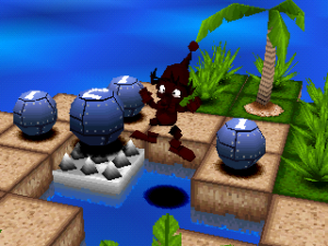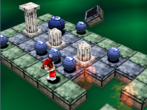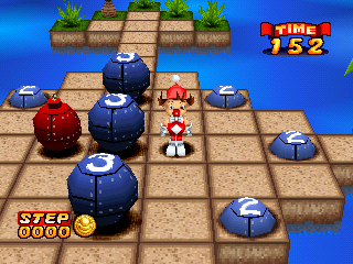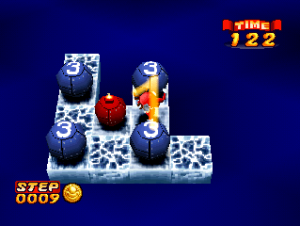 The Bombing Islands requires a fair bit more planning than its predecessor, as one false move can screw up your chances of clearing a stage. Thankfully, the game seems to be built with that in mind. Levels tend to be much smaller than those in Bombuzal, allowing for a better view of the entire stage when going into the overhead view mode, or when adjusting the camera. There is also an “undo” button, where you can go back a step if you suddenly realize you’ve screwed yourself over. If you do screw up beyond the limits of the undo button (which will happen a lot), you can easily restart the stage from the pause menu, and there’s no lives system to penalize you for screwing up.