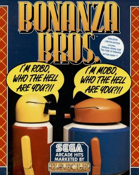 Bonanza Bros. seems to be a bit more popular in Europe than it was in the US. Part of this may have to do with the goofy advertising – the box cover has the main characters inquiring “I’m Mobo, who the hell are you?”, responding with, “I’m Robo, who the hell are you?” The back features photographs of Mobo and Robo as action figures, posed in various real life locations. It adds a lot of goofy attitude and personality which aren’t really present in the games themselves.