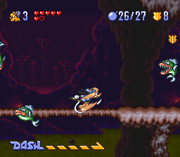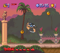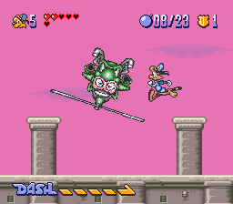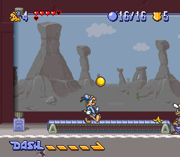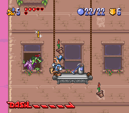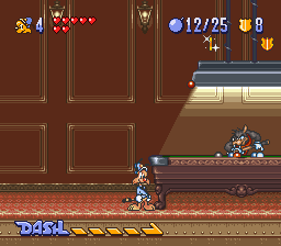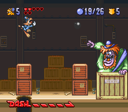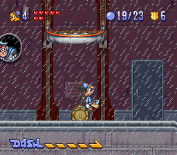 While the game doesn’t look especially impressive for the year it was made, there are a few graphical touches of note. There’s a few unique animations for taking hits in the cartoon’s usual slapstick manner, which makes for a cute touch. The game also deserves credit for its unusual continue screen: A comedy club in which an anthropomorphic stick of dynamite tells you awful, awful jokes. The only way to keep playing is to choose to laugh, as difficult as it might be to choose that option. The music, while far from best work with the SNES sound chip, is usually pretty appropriate for the game. The somewhat jazzy tracks for the cruise ship and downtown stages are particular highlights.