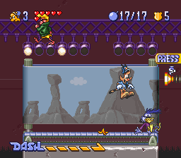 Unsurprisingly, Bonker’s main method of attack is to jump upon foes, at least for those enemies that aren’t protected by spikes or flames. By pressing the Y button, however, you can make the bobcat burst forward in a dash of speed, useful for taking out enemies, smashing through certain obstacles, and getting a lot more horizontal momentum out of your jumps. There’s a brief cooldown after each dash, however, so you can never go quite as crazy with it as you want. It’s a mechanic that feels very similar to Konami’s Buster Busts Loose, at least on paper. Unfortunately, while that game had you doing such impressive feats as running up sheer walls or leaping from plummeting train cars, this game never does anything quite so exciting.