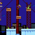 The game itself is a fairly typical side-scroller, where enemies are defeated by jumping atop of them, and progress is made by moving to the right as quickly as possible. Despite the simple nature of the levels themselves, there’s a lot of fun setpieces that help keep the game at least somewhat memorable. The downtown stage has a segment where you have to outrun speeding cars on an interstate, before leaping your way through a traffic jam. The movie studio stage takes you through a Wild West set, followed by a sci-fi soundstage where the saucers you platform across tear holes in the background. Sadly, not all the stages are ever this inventive, especially since the penultimate stage is a sewer, but what’s there is nice.