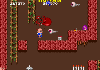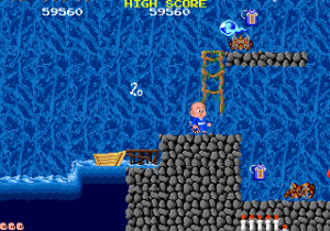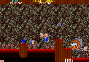 The game received a home port in 1990 for the PC Engine. For the most part, it’s a solid conversion, though it ditches the two-player mode and removes the timer. One major change lies with its continues – the arcade version featured revival checkpoints but they were relatively generous, even allowing you to respawn after continuing. However, the PC Engine version limits your credits and restarts you at the beginning of the stage when you continue. The arcade version appears on the Taito Legends 2 for the PlayStation 2, and is also available on Hamster’s Arcade Archives.