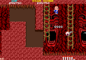 The Japanese title, Jigoku Meguri, means “Hell Explorer”, which certainly sounds much cooler than the English title. The game was directed by Arkanoid creator, Yasumasa Sasabe, along with Tsutomu Yoshikawa (credited as “Crazy Yoshikawa”) and Tetsushi Abe (Credited as “Creamy Tetsu”). Both Crazy Yoshikawa and Creamy Tetsu would go on to create a few more games, neither careers extending far beyond the early 1990s. Yoshikawa would continue to credit himself creatively in future games going by “Stooge Tom” in Sword Master (1992) and “Crazy Tom” in Cacoma Knight in Bizyland (1993). This game also served as the first game for Kenji Kaido, credited as a designer on the project. He would go on to establish himself at Sony, producing Ico, Shadow of the Colossus, and Ape Escape.