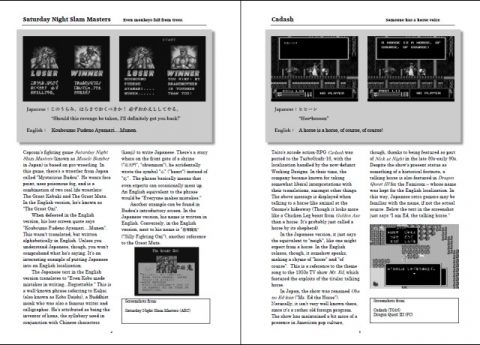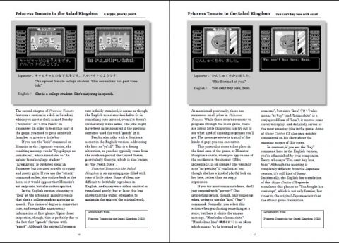 Localization is a tricky business, especially due to the myriad of differences between both the English and Japanese languages and cultures. Retro Game Super Translation Selection examines 101 lines of dialogue from classic video games, compares how they were localized, and includes some explanation for the business or cultural reasons surrounding such changes. Originally authored by a professional video game translator, this is a localized version of a doujinshi released at the Game Legend retro game event in late 2016, and features a unique perspective rarely seen in the English speaking world! Also includes four columns by guest writers that compare English and Japanese onomatopoeia, examines different game titles between territories, explains the math behind retro games, and illustrates the many changes made to the Pokemon Game Boy titles.