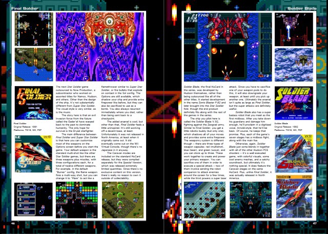 Blast off and check out the first in HG101’s line of books on shoot-em-ups! Volume 1 covers over fifty titles from the glory days of the 80s and 90s, by such legendary developers as Compile (Zanac, Aleste / Power Strike, MUSHA, Space Megaforce, The Guardian Legend), Hudson (Star Soldier, Gate of Thunder, Sapphire), Technosoft (Thunder Force, Hyper Duel), Irem (R-Type, X-Multiply, Dragon Breed), Cotton, Rayxanber, and several other individual titles like Recca, Magical Chase, Coryoon, and Gleylancer. Featuring a cover inspired by the works of Naoyuki Kato, who illustrated the Japanese artwork for The Guardian Legend.