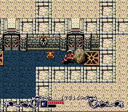 It’s a smart way to get around graphical limitations, and lets Produce put more effort into the actual dungeons and puzzles. The puzzles are where the game really shines. There’s a great variety and every time you think you’ve seen every type of block to push or number pattern they throw something new at you. They’re actually much more challenging than the combat, and Brain Lord‘s marketing (and obviously the game’s name) was focused entirely on them. While the puzzles do start out with the most basic action of pushing blocks onto switches, things very quickly get more complex as you have to decipher clues, perform some challenging platforming feats, and fight monsters at the same time.