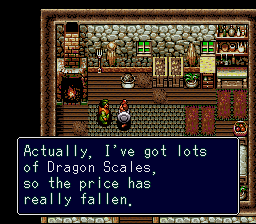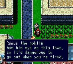 While Brain Lord was released in the US in 1994 (not long after The 7th Saga), the localization is much less awkward and more humorous compared to 7th Saga‘s unintentionally amusing attempts at gravitas. While both games use a pre-designed set of characters, Brain Lord‘s story is focused more on the heroes themselves. Their dialogue is much less driven and more playful in Brain Lord as the characters deal with more grounded (for a fantasy RPG) situations. The writing in general feels closer in tone to what one would see in an episode of The Slayers than the constant stream of world changing events that are commonplace in most SNES RPGs.