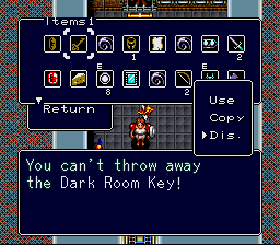 Graphically, Brain Lord is very colorful, with lots of different environments to travel through. The actual characters and animation aren’t particularly impressive, but the large variety of enemies seen throughout the game makes up for the lack of animation. It sounds great too, with a nice set of catchy tracks. Enix was publishing a wide variety of adventure games and RPGs from several developers in the 90s, but somehow Produce managed to make several that look and sound nothing like any other game out there. So while Brain Lord isn’t the most stunning game technically, there’s also no other game that looks or sounds quite like it. The music and sound effects were created by a group named Opus. Opus is actually just a small company, yet they have a very eclectic resume. Besides other Produce RPGs, they have done both music and sound design work on games like Cybernator (1992) and Thundercade (1987).