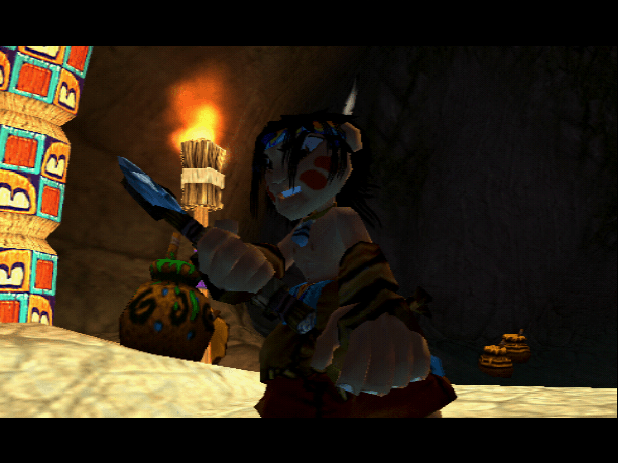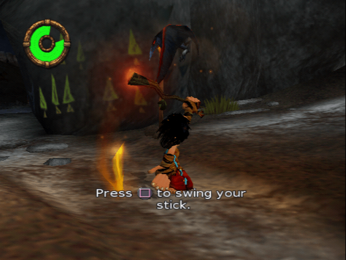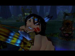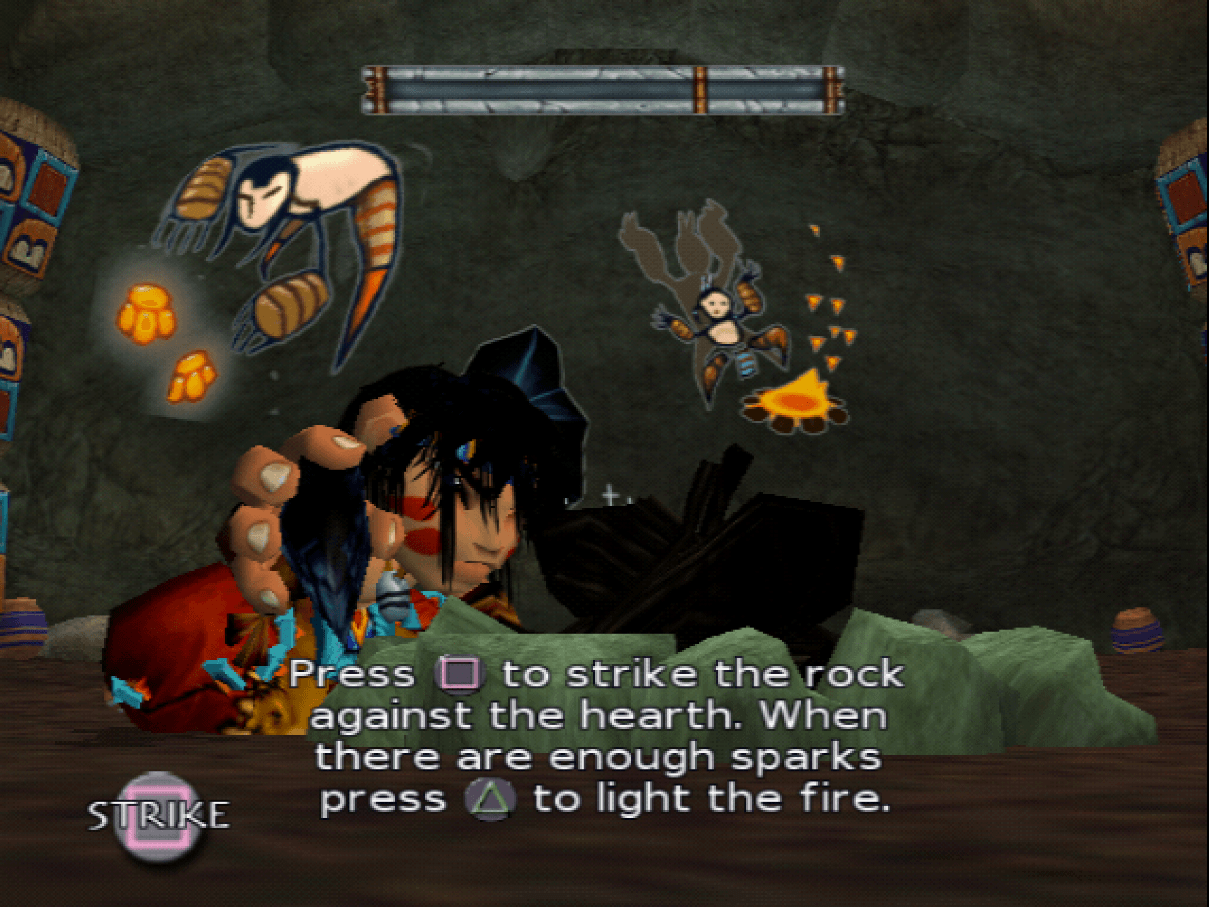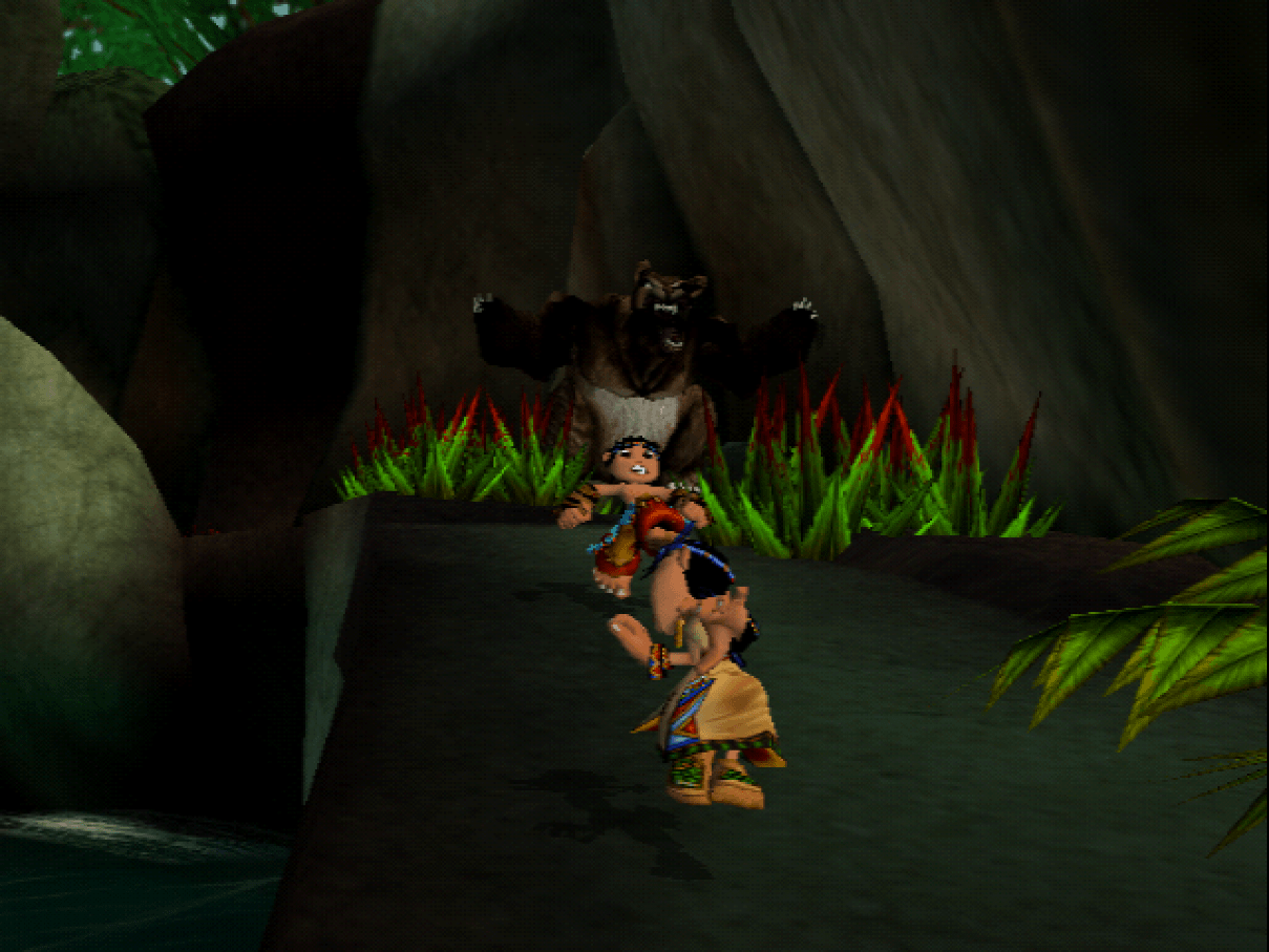 Originally codenamed Tom-Tom during development, the game’s story puts you in the role of a young Native American named Brave who, after going through a training session (the game’s tutorial), quickly learns that the safety of his tribe is threatened by a malevolent entity known as the Wendigo. While the Wendigo is often portrayed as this menacing, 15-foot-tall walking beast with glowing red eyes in Native American mythology, players may be surprised by the cartoonish depiction of this character in the game.