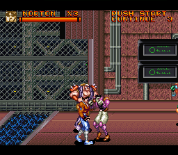 Thankfully, these three newcomers’ names are not affected by the localization process, but Norton and Bild DID get altered once again, now called Hack and Slash respectively. Seriously, that’s just… overlooking the localizers’ propensity for bad puns, the enemy names are all changed again to make them sound a bit more urban, but interestingly enough, their Japanese names mostly sound less like actual names and more like test subject numbers. For example, the basic punks are labeled K-M308 in Rushing Beat Ran, whereas they’re just known as “Zero” in Brawl Brothers.