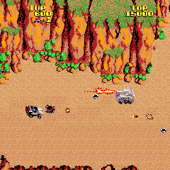 BreakThru is one of many mid-80s Data East games that fell through the cracks and was quickly forgotten. It’s a fun game, but it’s also easy to see why it wouldn’t leave a lasting impression. In 1986, arcade goers were treated to several games featuring flashier graphics and larger character sprites (Data East’s own Express Raider, released just a year earlier, among them), but BreakThru gives you just a tiny car, a limited arsenal, and a lot of bland military vehicles to blast through.