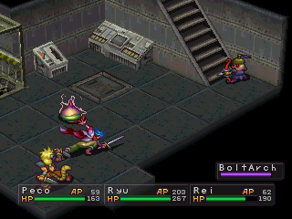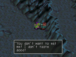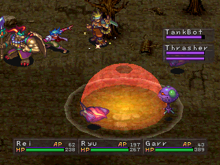 Garr is quite possibly the coolest character in the game. Garr is first encountered when he beats the snot out of you in a coliseum scene reminiscent to the one from Breath of Fire II. Later, for reasons that remain unknown for quite a while, Garr joins you and helps you escape the clutches of the mafia group that’s been pursuing you since the beginning of the game.