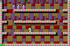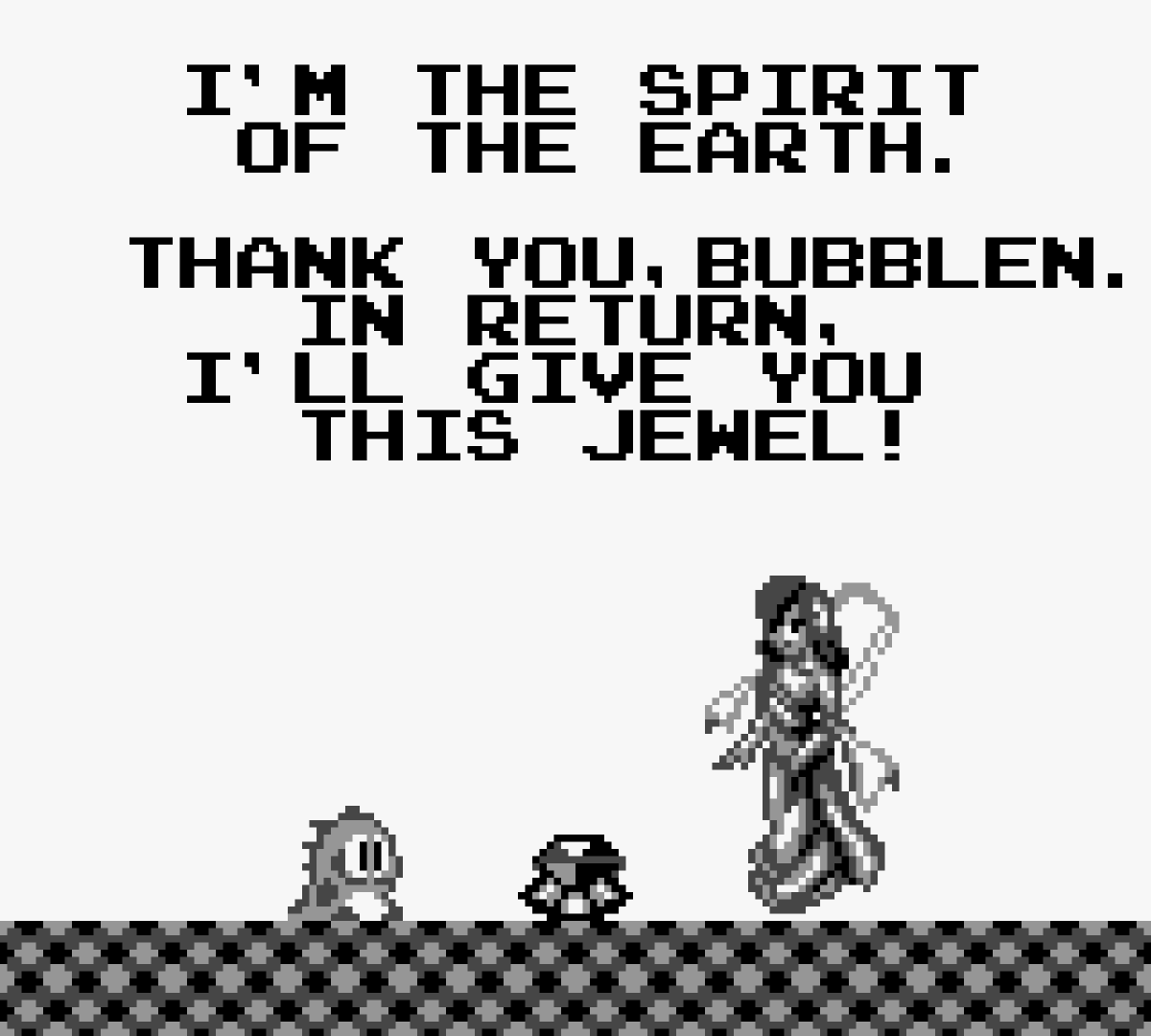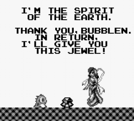 Not content to simply make as close to a carbon copy of the arcade original as possible, Taito decided to make the Game Boy version of Bubble Bobble almost wholly original. In this version, Bub is tasked with saving his sick brother by finding the fabled Moon Water, which is deep within the Cave of Monsters. Doing so will not only cure his brother but also return Bob to his original form. Like Final Bubble Bobble that came before it, Bubble Bobble for the Game Boy is focused on a single player experience.