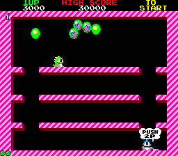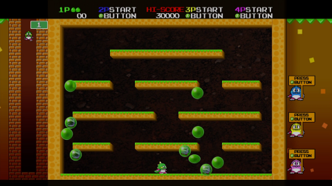 Despite being billed as the “old” version a few modern conveniences were added to improve the overall experience of the game. A stage select mode is included in this version, enabling players to pick up where they left off after losing their last life or when returning to the game after a break. Solo players can also summon a computer controlled Bob after completing the 100th floor, enabling them to see the true ending as well as to get a feel for the cooperative nature of the original game.
