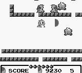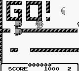 Many ports of arcade games have to confront an undeniable reality that the hardware the port is being run on often isn’t as powerful as the source. This is especially true for the Game Boy, not only because of its technical limitations, but also because of the size of its screen. For this port rather than trying to shrink everything down to a few pixels to make everything on screen viewable, Taito decided to keep the graphical fidelity of the sprites as close to the arcade as possible and instead introduced scrolling to each level. While this makes the stages feel much larger, it also means players are forced to make blind jumps to different parts of the stages where unseen enemies may await. The scrolling nature of the game also means that if a special item spawns the player may never see it. To combat this, players can hit select to pause the game and then freely scroll around the stage to see where everything is. Unfortunately this is a relatively inelegant solution that causes frequent interruptions and slows the flow of the gameplay.