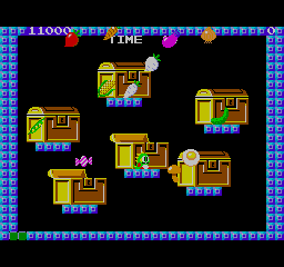 The “new” version of the game isn’t exactly new, but instead overhauls the graphics and music to mixed effect. It also adds an item dictionary which fills out as the player collects food and power-ups, and gives both Bub and Bob voices.