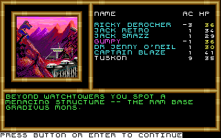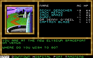 The setting introduced a futuristic war in the 25th century between superpowers RAM (Russian American Mercantile corporation) and NEO (New Earth Organization) for control of the plans for re-population of Earth. In 1990’s Countdown to Doomsday, the members of the player’s team are introduced as cadets for NEO, assigned to put a stop to RAM’s plans to sterilize the Earth. The titular hero Buck Rogers shall, indeed, make an appearance, as a NPC who will save the team from prison and join for a short while. Mostly, though, he will act as commander, giving the team missions, along with his partner Wilma Deering.
