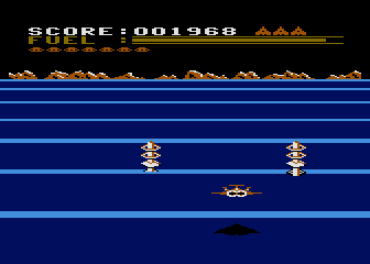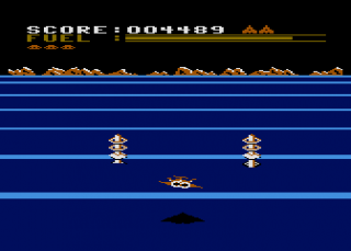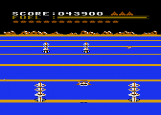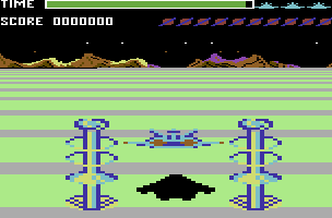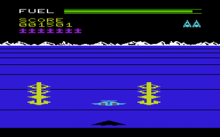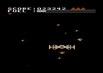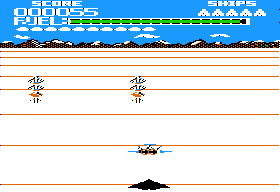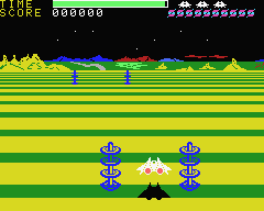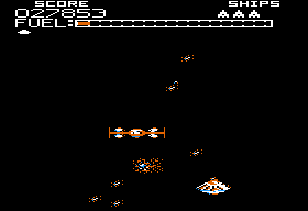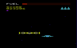The rest of the ports are mostly the same, aside from the differences in controls, graphics, and sound. The C64 version is actually much more lenient than the rest, though, because it recharges fuel whenever you lose a ship, and running out of it also doesn’t set you back. Unfortunately, the view appears incredibly zoomed-in, so much so that it’s often impossible to see the gate posts at the beginning of a stage. The mother ship in this version is ridiculously easy, though, as a single hit is enough to destroy it.