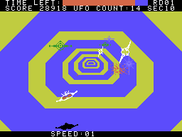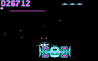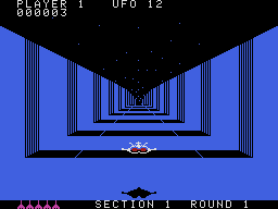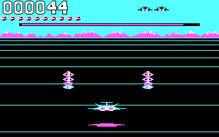 The later released Apple II and IBM PC versions follow the same template as the other computers, but suffer from horrible keyboard controls. They also introduce a space station that draws nearer with each round – at least for the first five loops. Afterwards, it turns into the same repetition of color swaps as the rest of the ports.