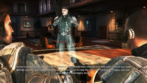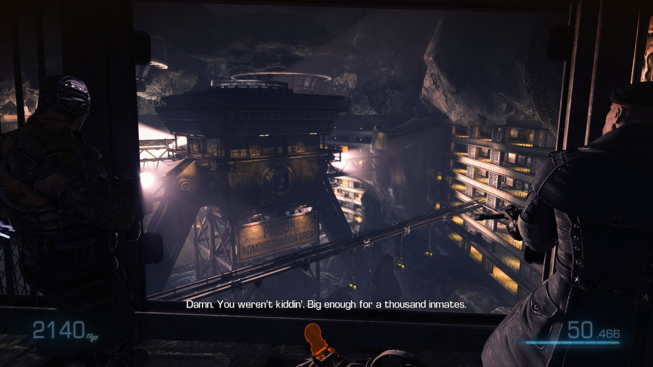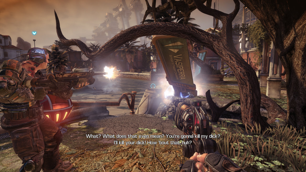 Bulletstorm‘s writing is a weird mixture of a genuinely good foundation hampered by its black comedy goals, as a lot of the comedy starts to revolve around how many cusses and private parts can be worked into a single sentence. It’s not out of nowhere with the pretty clear shots taken at Call of Duty and its toxic player base in there, but it’s often just a crutch for when the writers can’t think of a good line for a scene. Thankfully, the satire picks the right targets, aiming sights entirely on Capitalist systems and the military industrial complex, then using the absurdity of both to create cruelly comedic setpieces. The cultural commentary on The Gamers rings more hollow due to the game using some design norms from its targets, a similar problem Duke Nukem Forever had.