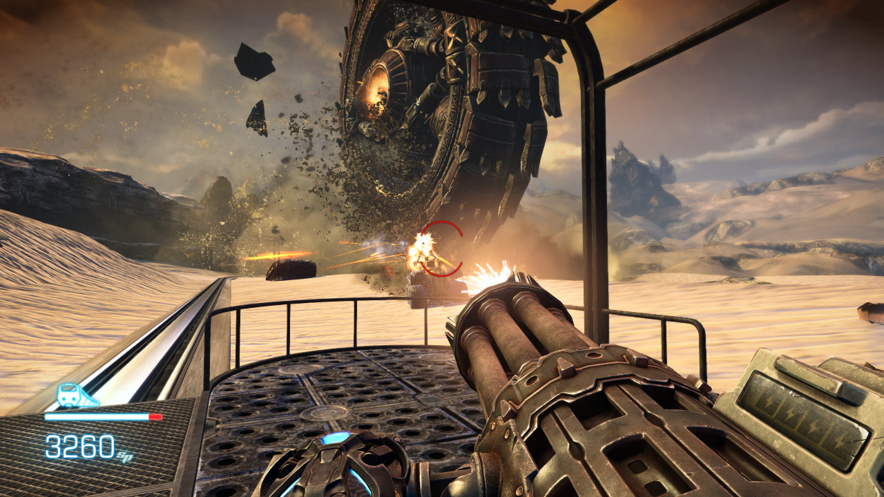 There’s also a heavy focus on setpieces, basic play often interrupted by spectacle moments that range from a fun distraction to an obnoxious short bit you have to go through to get back to the fun. They often portray really cool in concept bits, like blasting away bandits as a saucer rolls towards you, requiring you to redirect it from time to time. Actually playing these moments often comes down to an unmemorable turret section or a static and fairly boring shooting challenge that would have been better off as a cutscene.