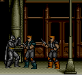Our two heroes also start out quite weak, and have to increase their power by collecting shards of the Power Crystals (maybe Data East meant to say Infinity Gems?) scattered throughout each level. “Scattered” may not be the right word, though. Throughout each city there are some capsules floating around. Punching one of these will make it spit out a helpful item. The main way for characters to increase their score and abilities is to walk up to one of these and stand around punching it for a long time. Be patient, one has to collect 200 crystals before any improvement is seen in either hero’s attacks. After that, completing the level requires tracking down a Key Crystal to unlock the level’s exit. That special crystal is also found by punching a capsule, so have fun backtracking through each level to find the right one to beat up.