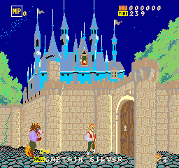 The Sega Master System version isn’t spectacular, but it’s still one of the better games for the system’s library by default. The same can’t be said of the Famicom version, published by Tokuma Shoten. The developers realized that the single hit kills were pretty stupid, so they gave you a life bar. This technically makes the game easier, but most of the enemies now take several hits, and their movement patterns are hard to dodge. Like the arcade version, it also takes extraordinary liberties with the concept of “hit detection”, so it’s kind of a crap shoot as to whether you take damage or not. Jim is terribly animated and he can no longer swings his sword at an arc, which looks pretty stupid. The backgrounds look okay, but in general, the sprites are really awful.