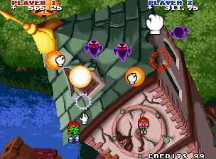 But overall, the game has a lighthearted nature and nice pace that makes it a good change of pace from the era of Cave and Raizing with “How many bullets can we fill the screen with?” that were beginning to become popular in the late 90s. Fans of TwinBee and Parodius might find the game fairly derivative, though, and it’s never as good as any of Konami’s efforts. It is at least worth playing for the interesting final boss, and the Engrish ending credits that come after.