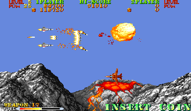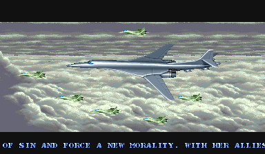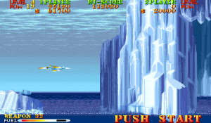 Taking on a more “U.S. Military Hell Yeah” kind of stance, Carrier Air Wing is about fighting terrorists from a third world country that has a ridiculous degree of power and military might. For some reason they have Antarctic bases and can launch satellite lasers into orbit. In the effort to thwart the “Rabu” organization, the Carl Vinson aircraft carrier is deployed by the Navy to kick them back to the third world. To complete this picture, your missions are briefed by a man who looks suspiciously like George Carlin. Battles are fought in a variety of locales where the player will suspiciously do more damage to the local infrastructure than the terrorists, who have the same kind of air fleets and ground support units present in Area 88. Some set-pieces are wholesale lifted from the predecessor.