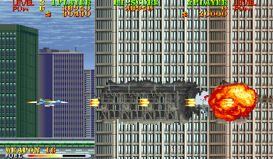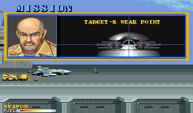 Of course, when it comes to barely resembling that which once was, Carrier Air Wing is a rather dissonant follow-up to Area 88. Bearing more of a resemblance to the U.N. Squadron incarnation of the arcade title, known as U.S. NAVY in Japan, Carrier Air Wing is a sequel in game mechanics only. It has absolutely no narrative connection to its predecessor. There are still three planes to fly with purchasable auxiliary weapons, life bars and shields. A mission handler talking about what the objective before each level is even present. None of these elements, however, are at all connected and even the anime aesthetic is gone in favor of an attempt at a more realistic appearance, though the success of that is questionable.