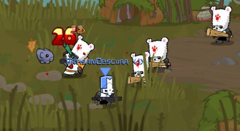 The plot involves up to four gallant knights (or whatever the players choose to play as) rescuing four princesses and a power crystal from an evil wizard and all of his cohorts. Players initially start out with these four knights (though there are bonus characters at the start if you own any of The Behemoth’s other games), with their colors relating to elemental affinities: orange (fire), red (electricity), blue (ice), and green (poison). However, more characters can be unlocked through either playing minigames or buying downloadable content. The levels can be selected via a Super Mario World-type map screen, and although you might occasionally be diverted off the path to get a necessary item, progress is generally linear.