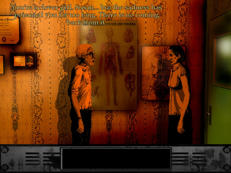 But, again, The Cat Lady is a game designed to make the player feel, not to unravel a mystery. It is a process of experiencing emotions first, a narrative second. Michalski developed Susan as a person to get to know, to get to understand better. He wants us to feel how depression changes a person, to understand why it’s necessary to explore.