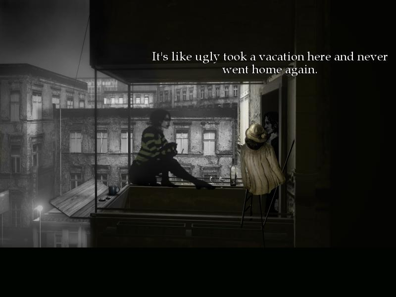 So it goes with The Cat Lady. The plot is not rationalized. The supernatural is not explained. What is real and not real within the game’s context is rendered irrelevant. It is then a somewhat disjointed, unevenly paced experience. It adds up in terms of having a beginning, middle, and end, yes, but Michalski makes no great strides in tying up loose threads, explaining the story’s murkier aspects. The effect is dreamlike, with ideas and scenarios flowing in and out, an argument for how thin the veil between reality and fantasy is.