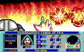 Apocalypse has enough to keep players interested in the conclusion of the series. It uses a non-linear hub system that allows the player a choice between which levels to go to and involves skipping back and forth between levels in order to progress further. This had not been used since the original Catacomb 3-D (and Ether Quest before that). To show that time progression that has elapsed since Armageddon, the player-character now has facial hair and wears a ring on his shooting hand (Perhaps to signify that how advanced of a wizard he has now become?).