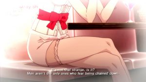 When viewed outside of the gender roles, it still doesn’t entirely make sense. The game presents Katherine as the choice of of commitment and maturation, learning to truly become adult. But she is also not exactly a stable individual and even presented as villainous (she violently stabs a cupcake upon learning her fiance bought a new cell phone) and one can’t help to imagine that Vincent, even a more grown-up version of him, would be miserable in this version of adulthood. She’s mostly likely presented in this way to give some sympathy to Vincent, as a way to to excuse (or least explain) his indiscretions. It’s also likely that the over-the-top presentations of Catherine/Katherine were meant to be comical, which is acceptable within the confines of the story, but falls apart when trying to map its lessons onto real life experiences.