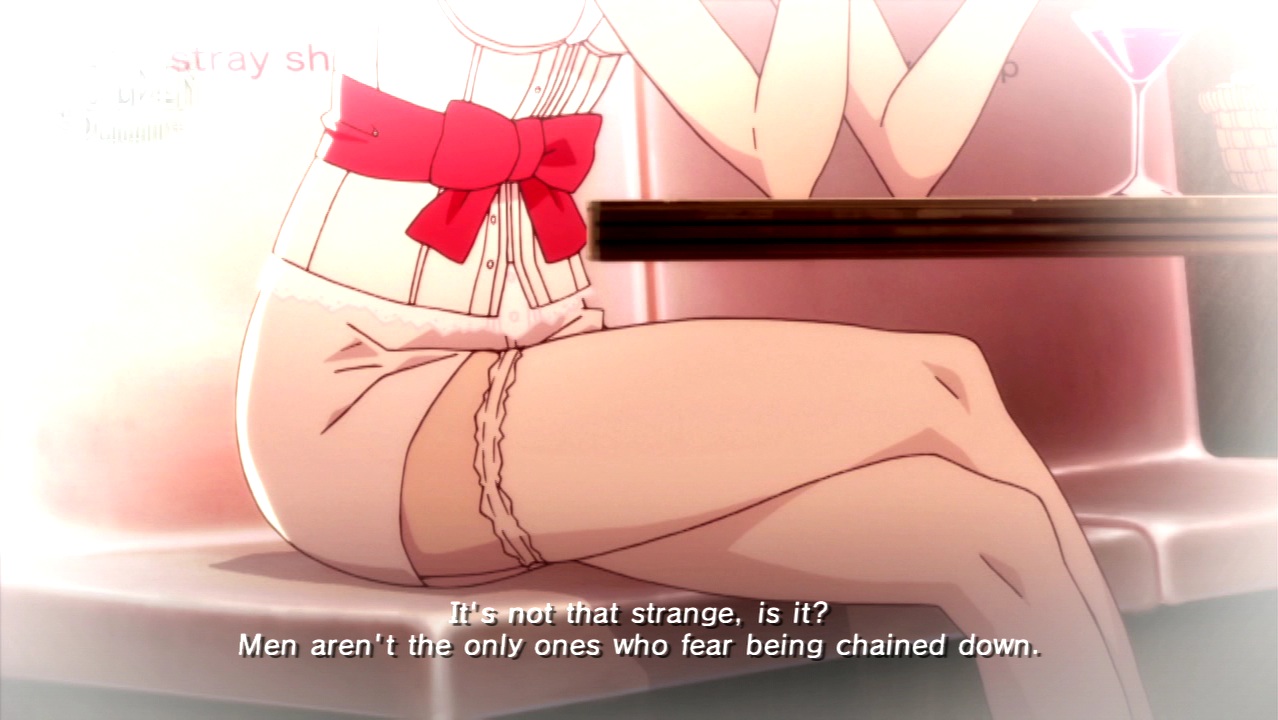 One of the main themes of Catherine is “lack of individuality”. Nobody wants to face themselves and everybody’s looking for any opportunity they can to avoid doing so. The modern world they live in provides many such opportunities. One can always lose themselves in the comfort of the daily grind. Likewise, the bar scene provides Vincent and his crew a chance to distract themselves from the Other by retreating into a world of the self where one need never think about the nothingness clawing away at them from within. Even the act of Othering is portrayed as a comfort in Catherine. Because the characters are so caught up in such an extroverted act, none of them stop to realize that they’re the ones reading the Other as a threat, let alone the deeper reasons that drive them to do so in the first place.
