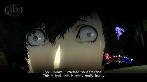 Based on these descriptions, one could reasonably read Catherine as a repudiation of Persona‘s themes. The problems the characters have to deal with are often the mundane results of adult life, like managing a healthy relationship or thinking about how to advance one’s career. Should the characters find themselves in a more exciting problem (i.e. Vincent’s adultery), any feelings of excitement are clouded out by helplessness and disempowerment.