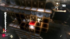 There are a few main things to remember, particularly the game’s strange rules of gravity. Blocks will remain suspended as long as they’re attached to another block around its edges, essentially allowing them to float in mid-air…unless you push out everything around it, of course. You can also drop off, hold onto, and move along the edges. You can push multiple boxes in a row at once but can only pull them one at a time. The tower is also three dimensional, in that there are extra columns of blocks behind the main ones, though since the blocks are opaque it’s hard to actually see them. You can tilt the camera but this only makes the edges visible, so many still remain obscured.