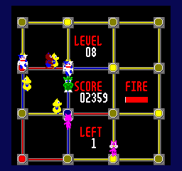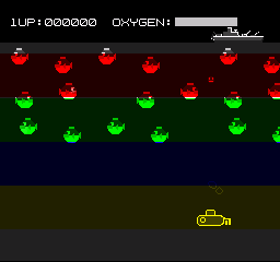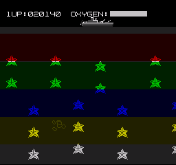 The four games that don’t fit these categories are more interesting highlights. Mystery Planet controls like Asteroids and has you gathering panels while avoiding enemies. Sea Fighter is an interesting “1v1 shoot-em-up” where you have to destroy the battleship at the top of the screen while avoiding its shots and the aquatic life that populates each level. Carnival Hunt is different from the other shooting galleries since you control a gun from below and have to shoot objects to maximize points while conserving ammo. Dragon Walker is a Q*Bert-esque maze game where the goal is to walk around and change the color of the floor to earn points while avoiding enemies or punching them away.