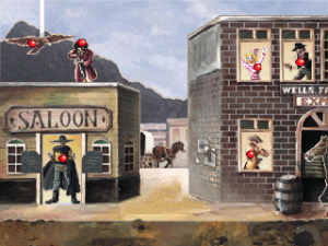 The game begins with a beautiful intro of a boy entering an arcade, but the interface in between games is purely menu-based. In terms of the games offered, variety is the biggest issue. Five of the twelve games are Breakout clones and three of them are mechanically identical Guncon-compatible shooting galleries with only the environments and targets swapped out. The Breakout clones do support Namco’s Volume Controller and attempt to be distinct in their aesthetics- one is based on globetrotting, whereas another uses 3D visuals- but they mostly play identically and don’t feel precise with a standard controller. The shooting galleries offer wild west, safari, and war themes, but their simplicity wears thin almost instantly.