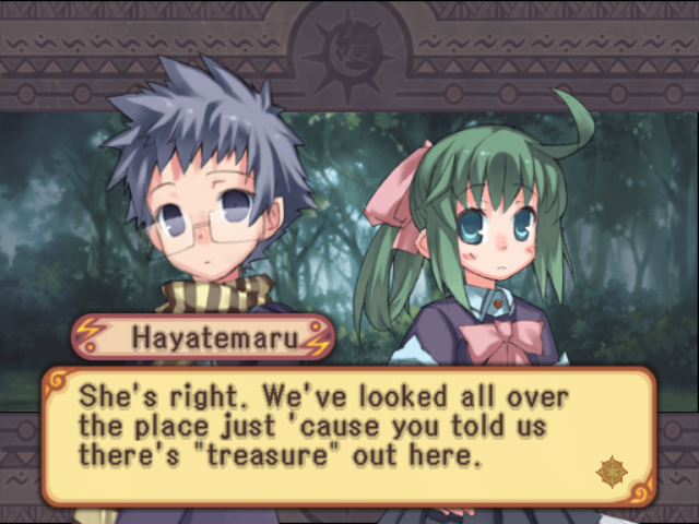 Then there’s the localization itself: most anyone who remembers Chaos Wars at this point probably owes the distinction to a YouTube video or two of the painfully horrid English cutscene voice acting, some of which was phoned in on the fly by (brace yourselves) family members of O3’s CEO. Fortunately, the original Japanese voices play in battle and can also be turned on for story sequences, but the roughly-translated text has its own problems: so little cleanup was done, for instance, that Yuri’s original Japanese name, Uru, was left intact, and if you believe this was an artistic decision then we’ve got a bridge to sell you.