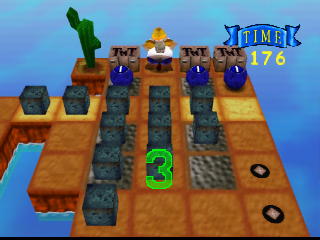 In between the time it took for Kemco to decide to release The Bombing Islands stateside, Realtime Associates would develop their own version for the Nintendo 64, featuring different characters and an altered level set. Titled Charlie’s Blast Territory, the game feels like a quickie port from the PlayStation, though a few key changes and additions do keep it from falling into total irrelevance.