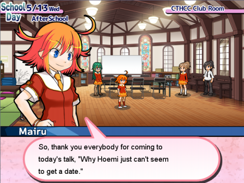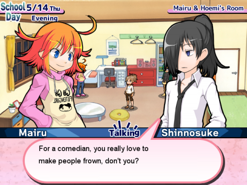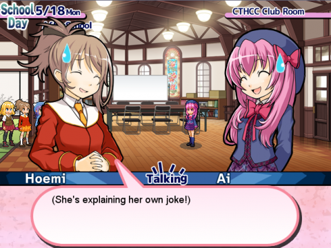 Since the first entry, Mairu has managed to resurrect the school’s comedy club, with all of the recruits from the first game joining alongside her. However, she’s hit with another challenge to find a teacher who can supervise club activities (she really should have read the rules), a rival classical comedy club starts to wage war against the group, and a new student may completely shake up the club dynamic, and possibly not for the better. There are also three new characters of note.