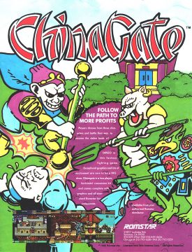 Technos created the foundations of the beat-em-up genre with the Kunio-kun and Double Dragon games, but before those series really took off, they released the arcade-only China Gate. The Japanese title is Saiyuu Goumaroku: Ryuubouyougi no Shou (“Journey to the West Exorcism Record: Chapter of Flowing Stick Magic”).